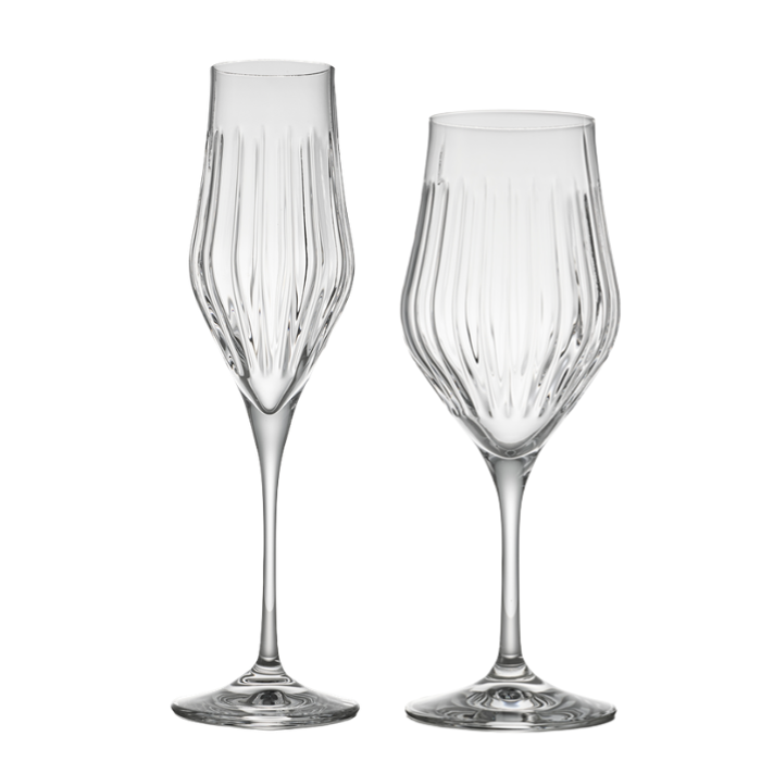 Newest addition to the Timeless Glassware Collection, with a graceful shape and signature hand-cut detailing, they bring a refined elegance to every pour—perfect for everyday luxury or special occasions.